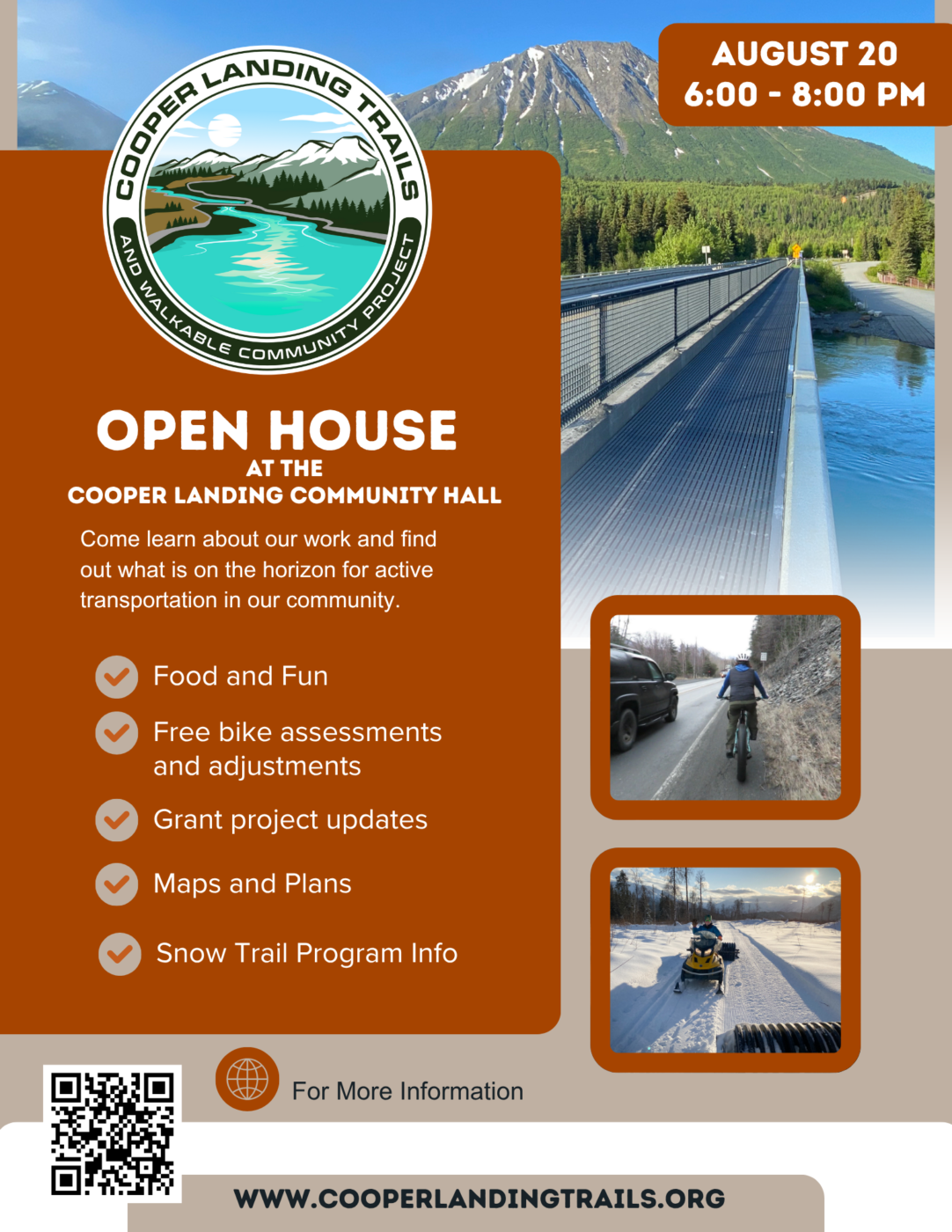 Events, News, Snow Grooming Updates, Trails Updates, Walkable Community News, Walkable Community ProjectOpen House 6-8pm August 20th at the Cooper Landing Community Hall Posted on August 6, 2025August 6, 2025 by David 06 Aug Devil’s Pass Trail Maintenance August 9th with Alaska Trails Aug 20th Open House